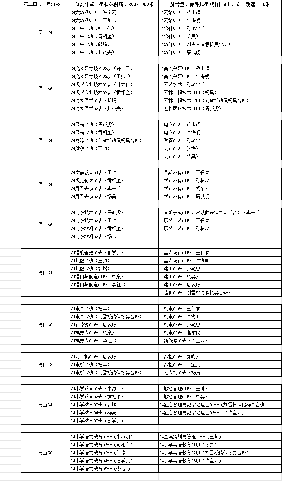 2024级大学生体育测试时间安排表
